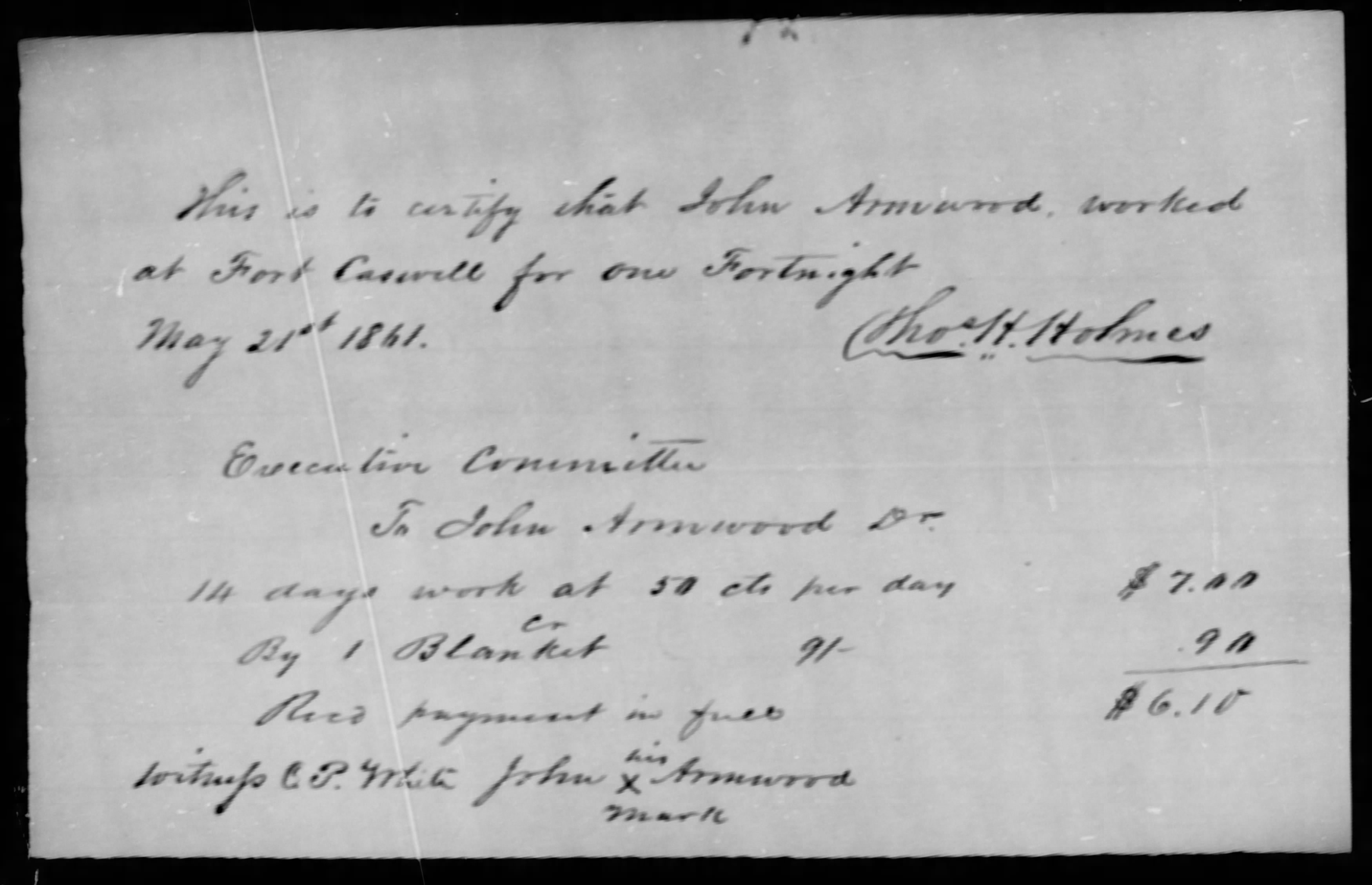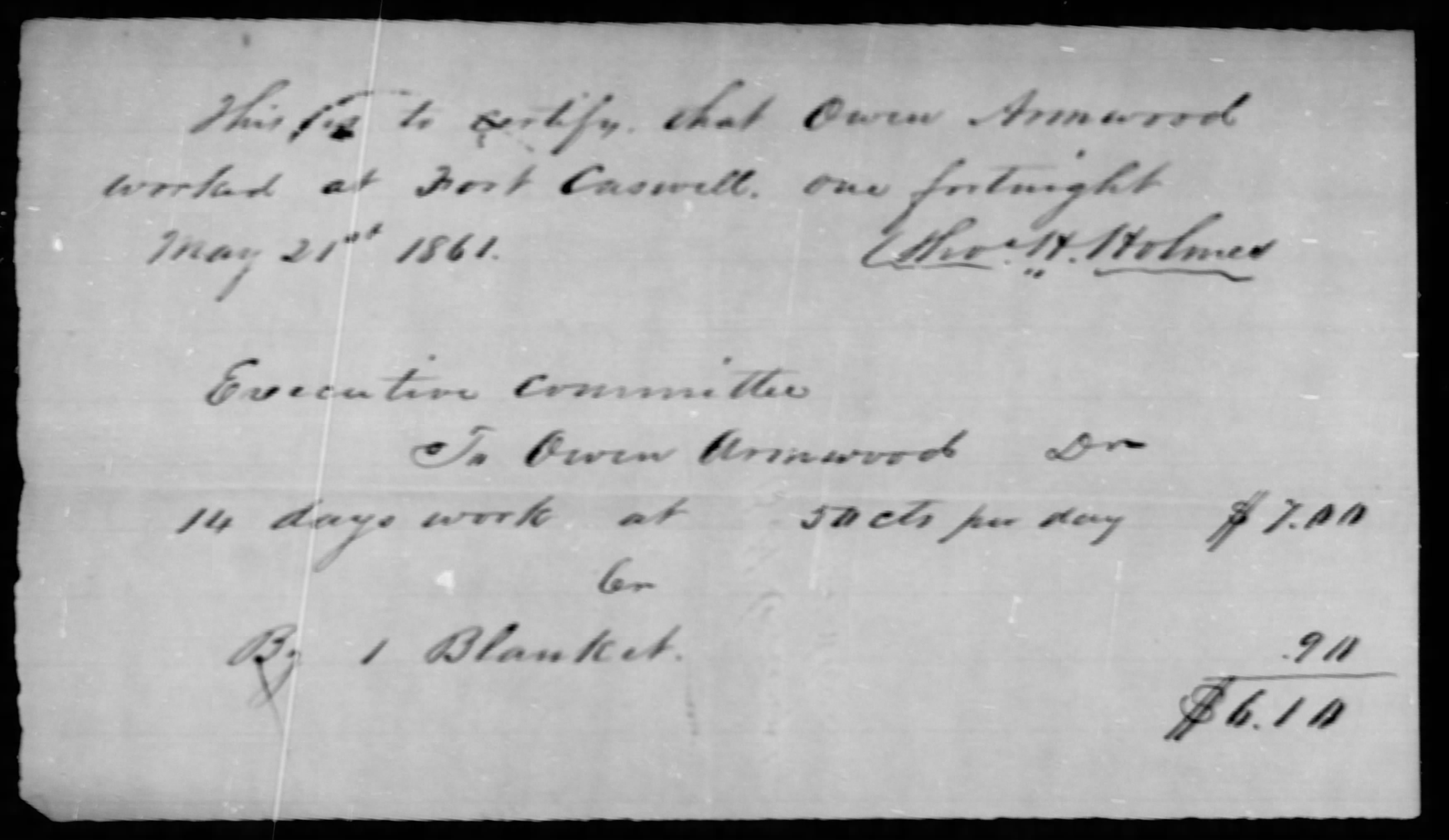 During the Civil War, free men of color were conscripted to build breastworks on North Carolina’s southern coast. After filing claims, the Armwoods were paid for their two weeks of service — minus the cost of a furnished blanket.