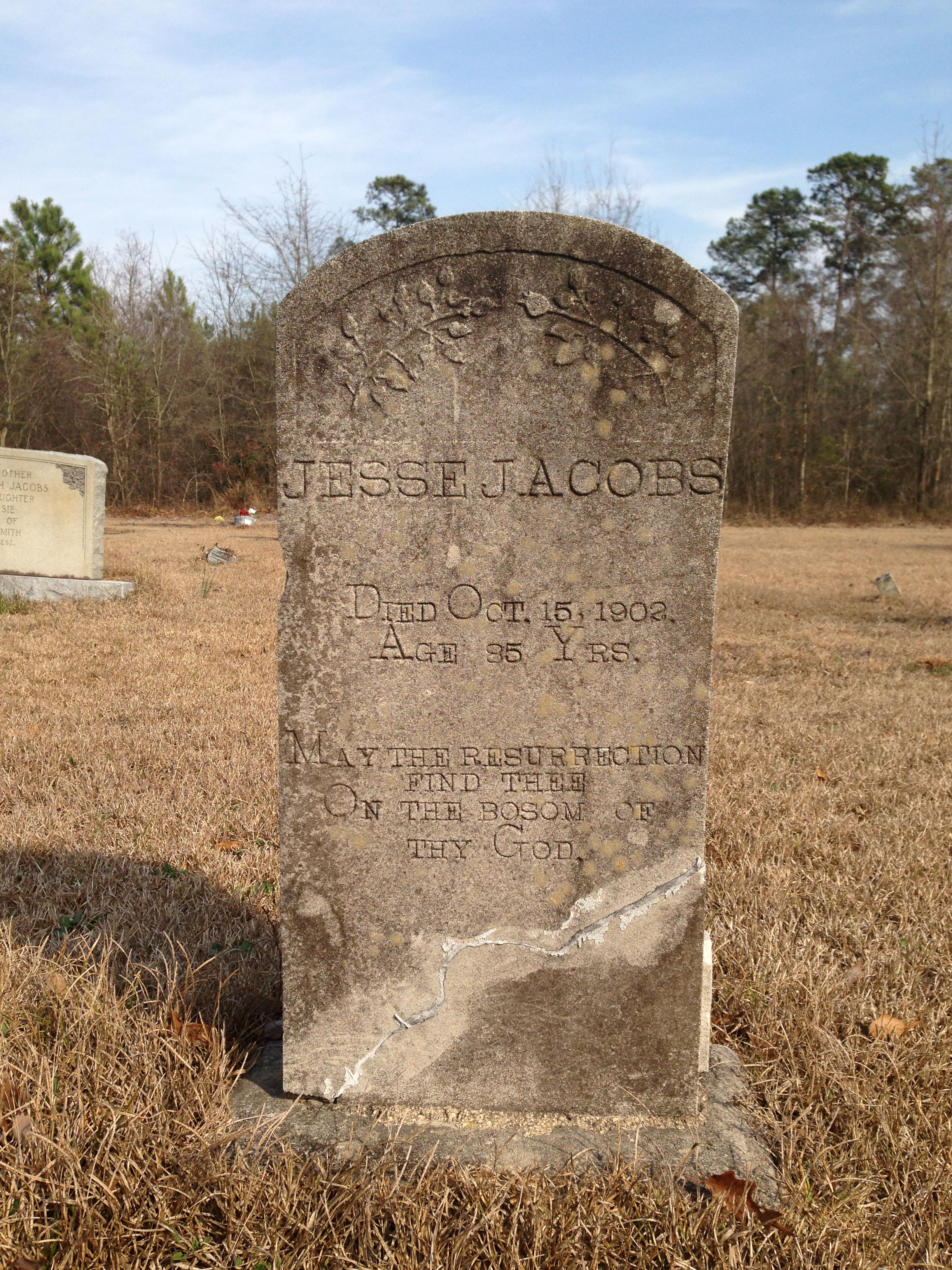 Jesse A. Jacobs was born about 1817 in Sampson County and died in Wayne County in 1902.